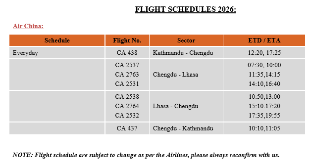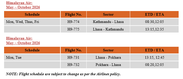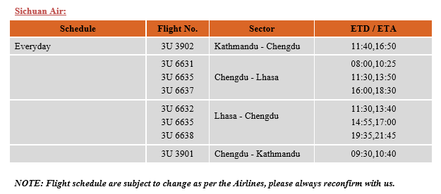 Flight Schedule to Tibet